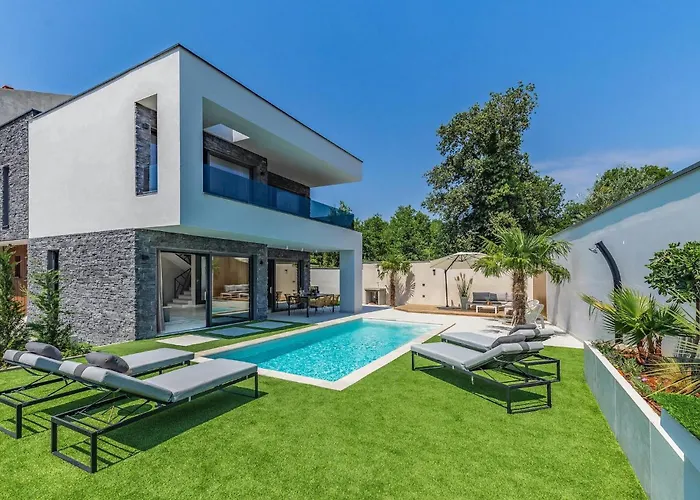 Die 4-Zimmer- Villa Bonaca Medulin liegt in einer Entfernung von 25 Minuten zu Fuß vom Adrenalin Park Medulin und bietet Gästen eine Sauna für einen entspannten Aufenthalt.